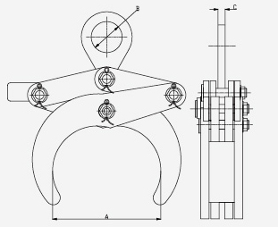 A tool for lifting plate type items. Usually used for clamping and lifting of round steel.